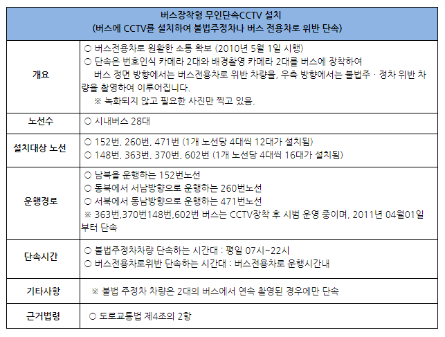 시내버스 CCTV를 활용한 단속은 차선 1개를 살려놓은 효과를 거뒀을 것으로 예상됩니다.