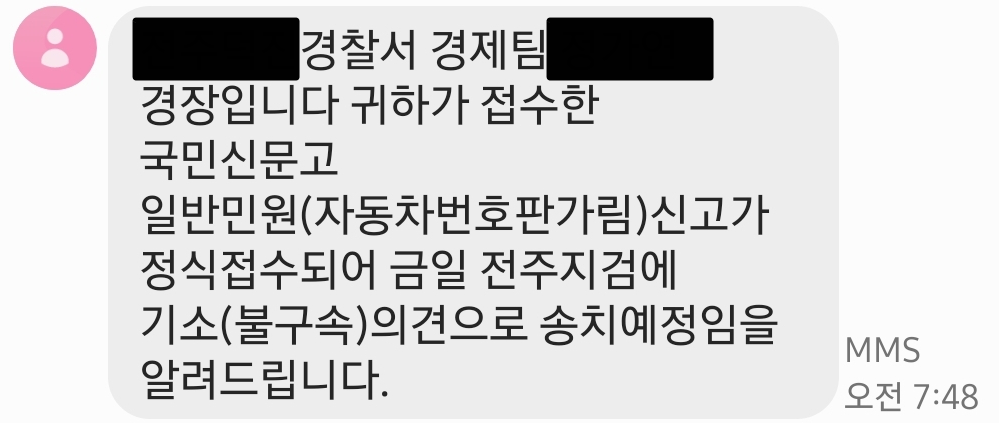 처리가 진행되면 진행상황을 문자로 받아볼 수 있습니다.