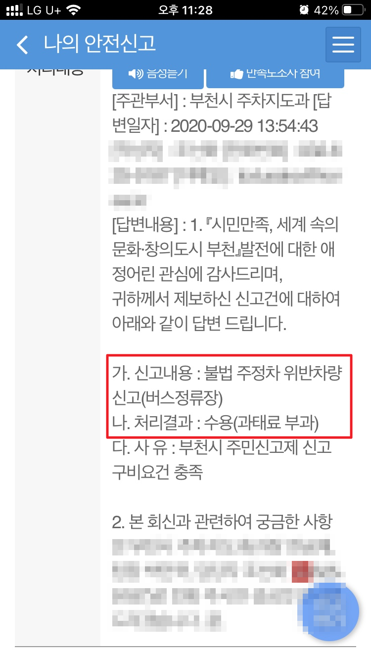 불법주차를 신고하고 나면 가장 궁금한 점은 무엇일까요? 아마도 과태료 부과여부가 제일 궁금합니다. 저도 제일 궁금한 점이 과태료 부과여부였는데요. 분명 회신에는 과태료 부과된다고 "수