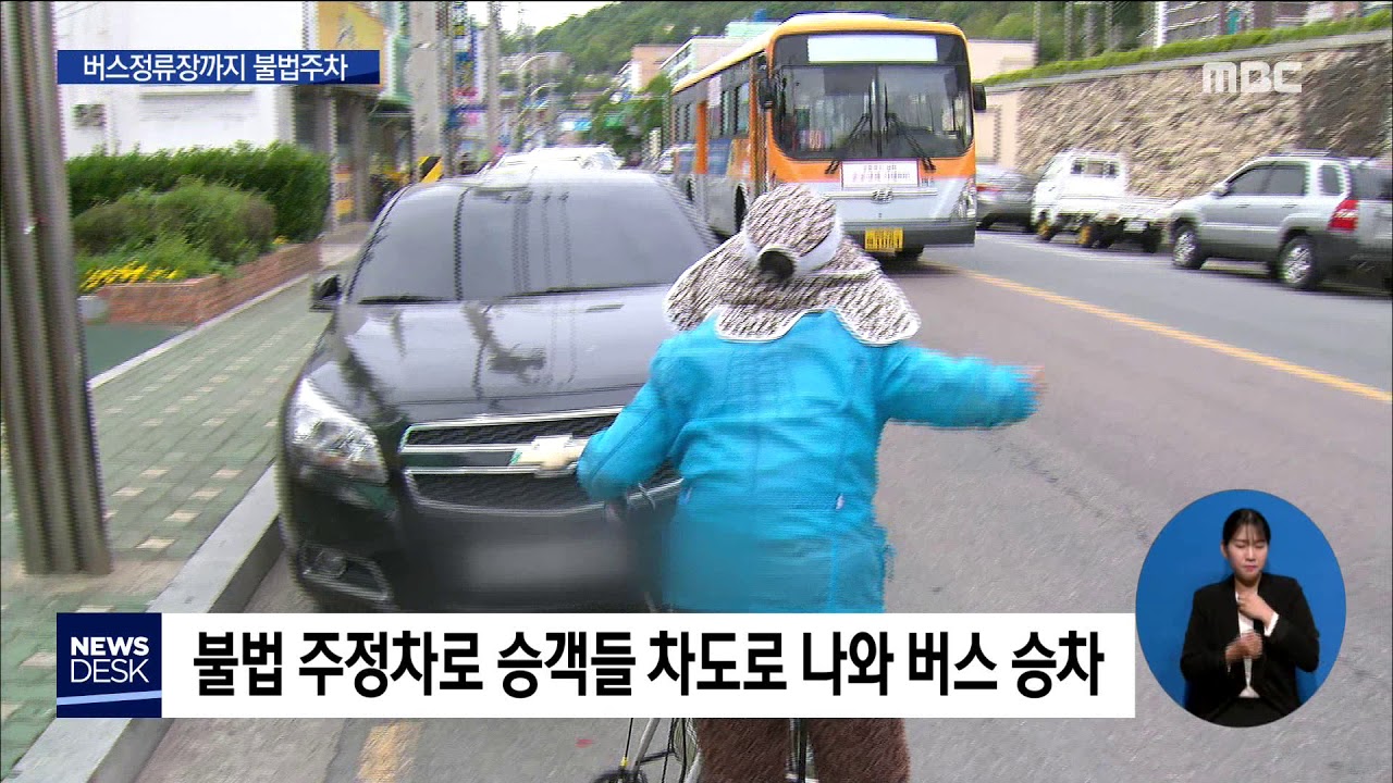 버스로 출퇴근 하다보면 버스정류장에 불법주차한 차량을 흔히 발견하게 됩니다.