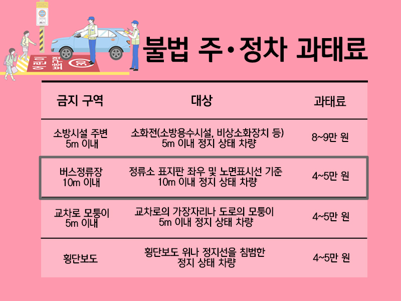 버스정류장 불법주차 과태료는 4만원입니다. (승합차는 5만원)