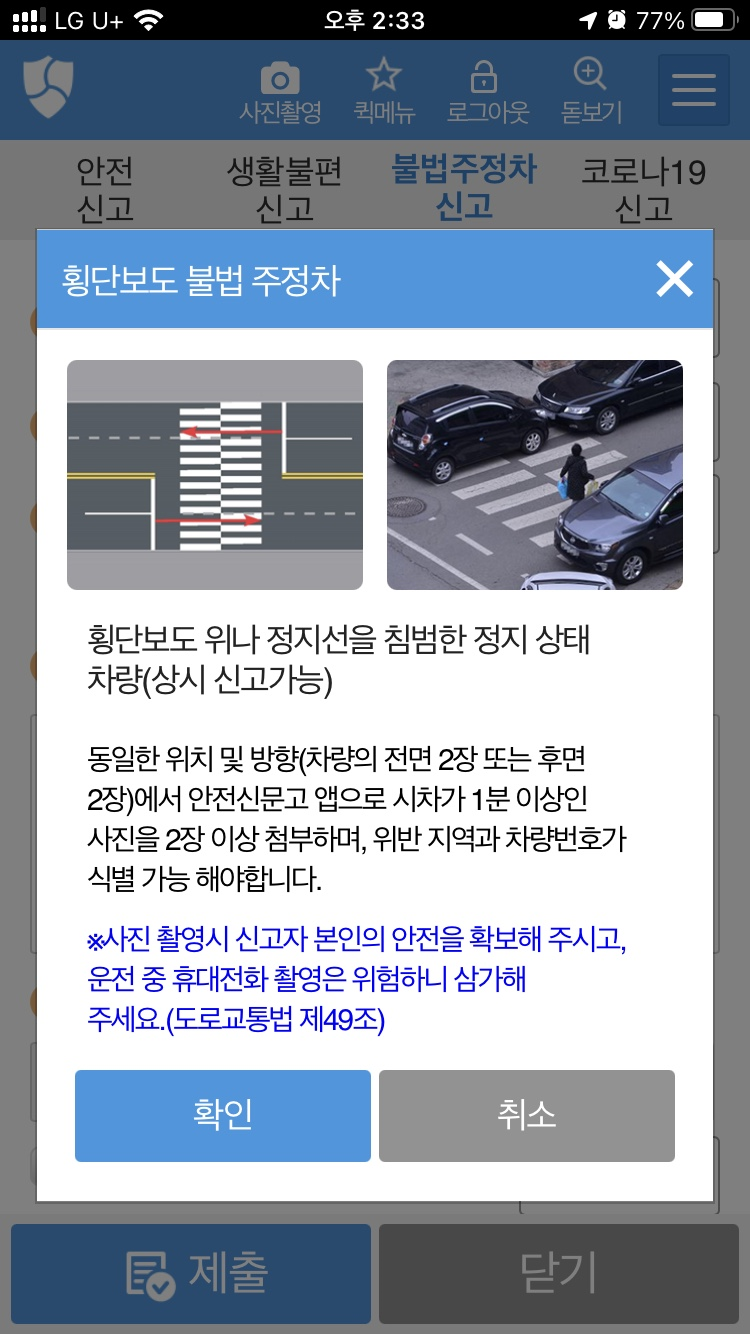 횡단보도 불법주차 신고방법중 가장 먼저 확인해야 할 사항입니다.