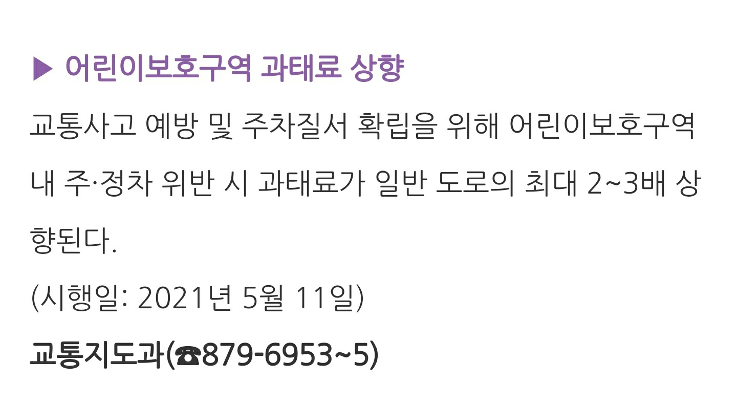 불과 몇달 후면 어린이 보호구역 과태료가 오르게 되네요.