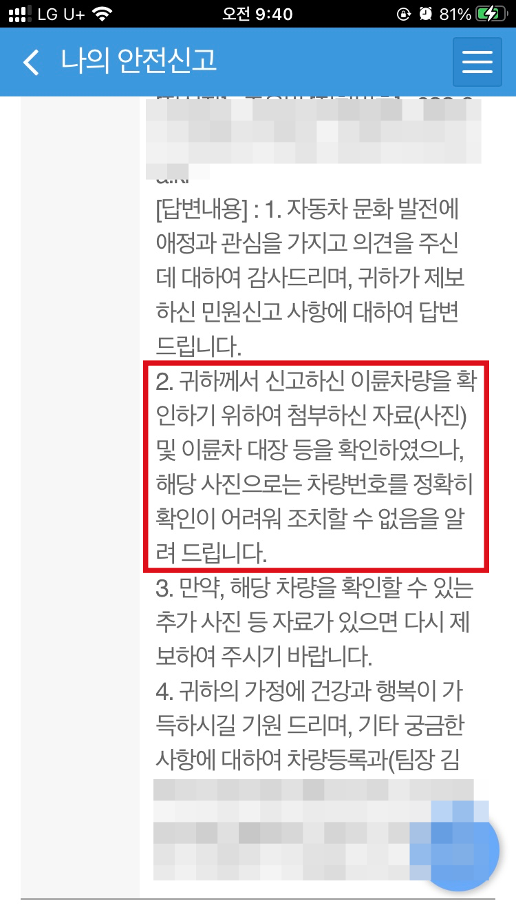 담당자는 차량번호를 정확히 확인할 수 없다고 합니다.