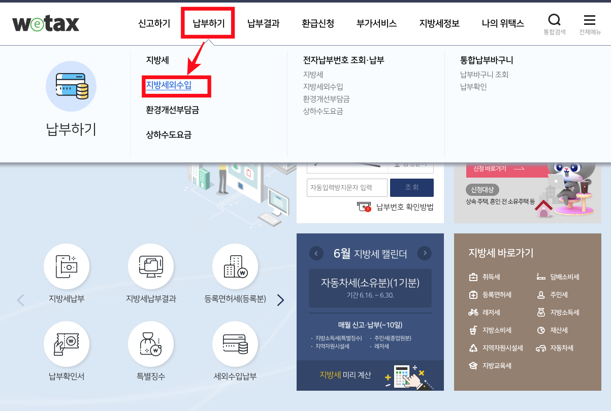 서울을 제외한 모든 지역의 주차위반 과태료 조회는 위택스에서 가능합니다.