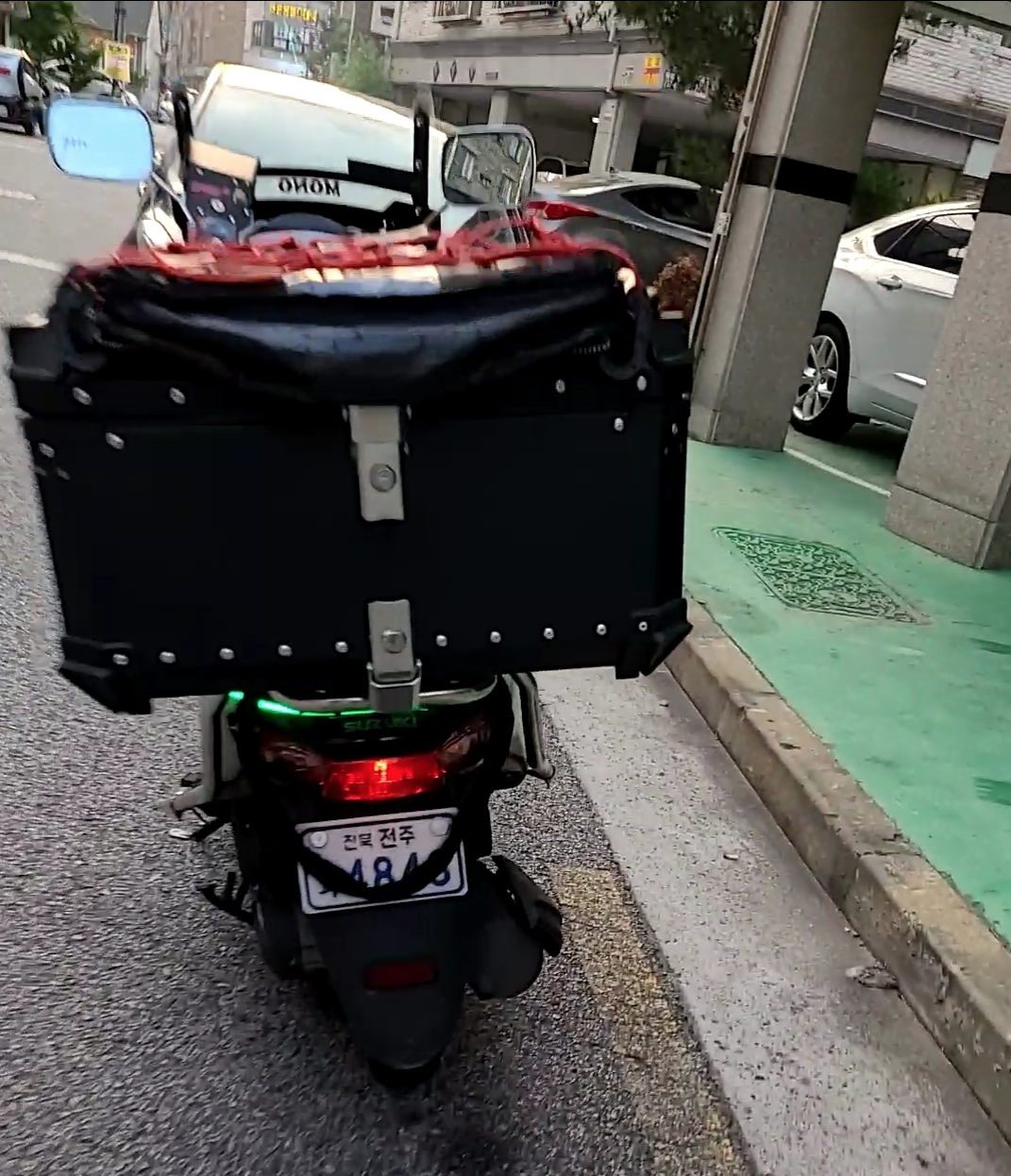 아래 오토바이 번호판을 과감하게 공개합니다. 그래도 번호를 알기 어렵기 때문입니다.