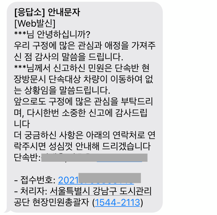 제가 신고한 곳은 강남구인데, 강남구 불법주차는 강남구 도시관리공단에서 처리합니다.