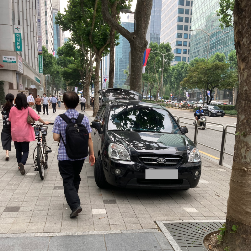 주차할 곳을 냅두고 왜 하필 사람 다니는 인도에 주차할까요?
