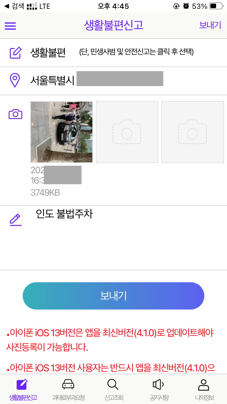 사진 찍고, 신고사유만 적으면 끝.