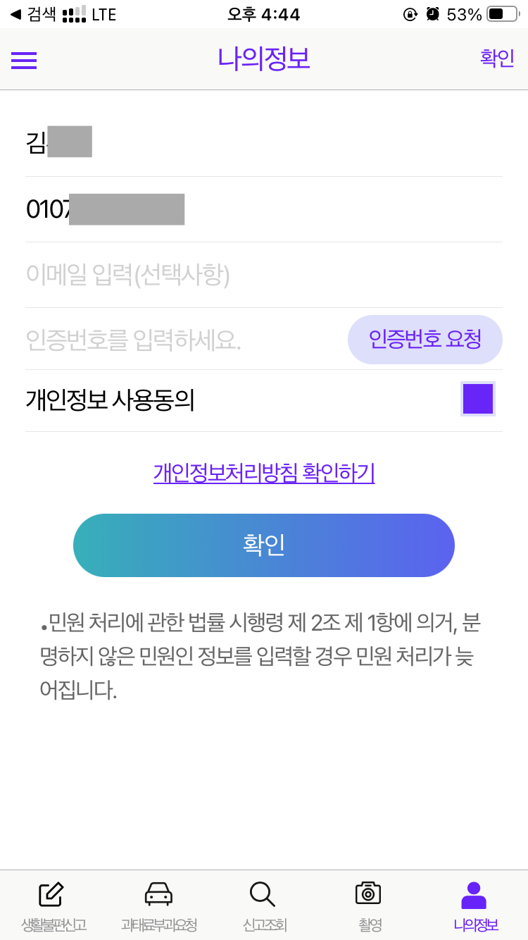 이 과정은 처음 실행시 한번만 필요하고, 다음부터는 바로 불법주차 신고로 넘어갈 수 있어요.