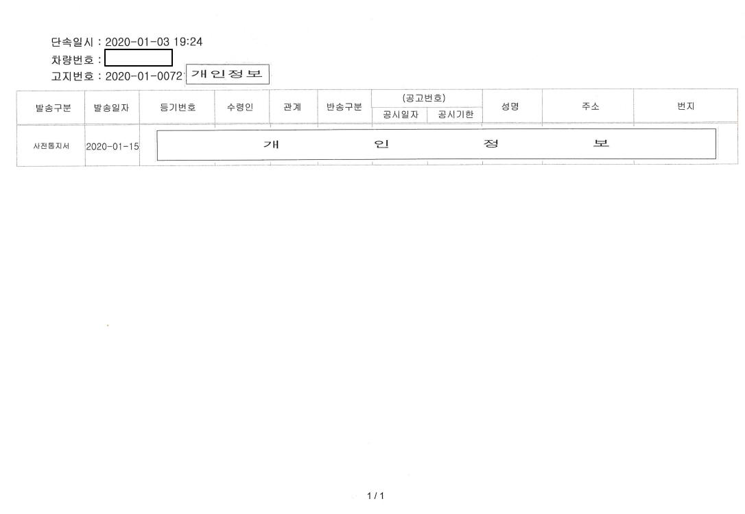 물론 개인정보의 이슈가 있기에 개인정보에 해당하는 부분은 모두 삭제하고, 사전통지서 발송한 내역을 보내줬습니다.